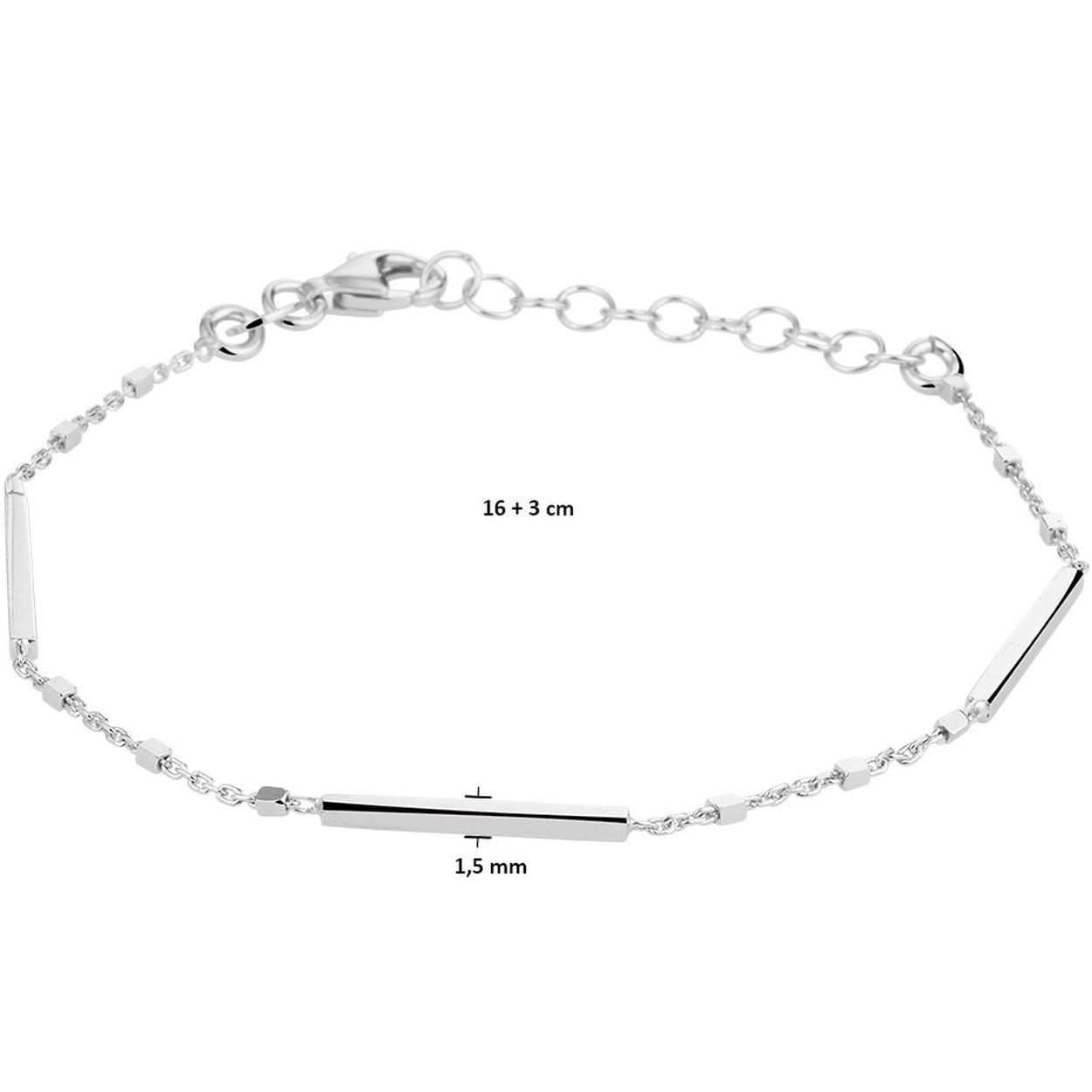 Gerhodineerd 925 zilveren armband uitgevoerd met staafjes en een stevige karabijn sluiting. De armband heeft een draaglengte van 16cm met een extensie van 3cm en een breedte van 1.5mm.