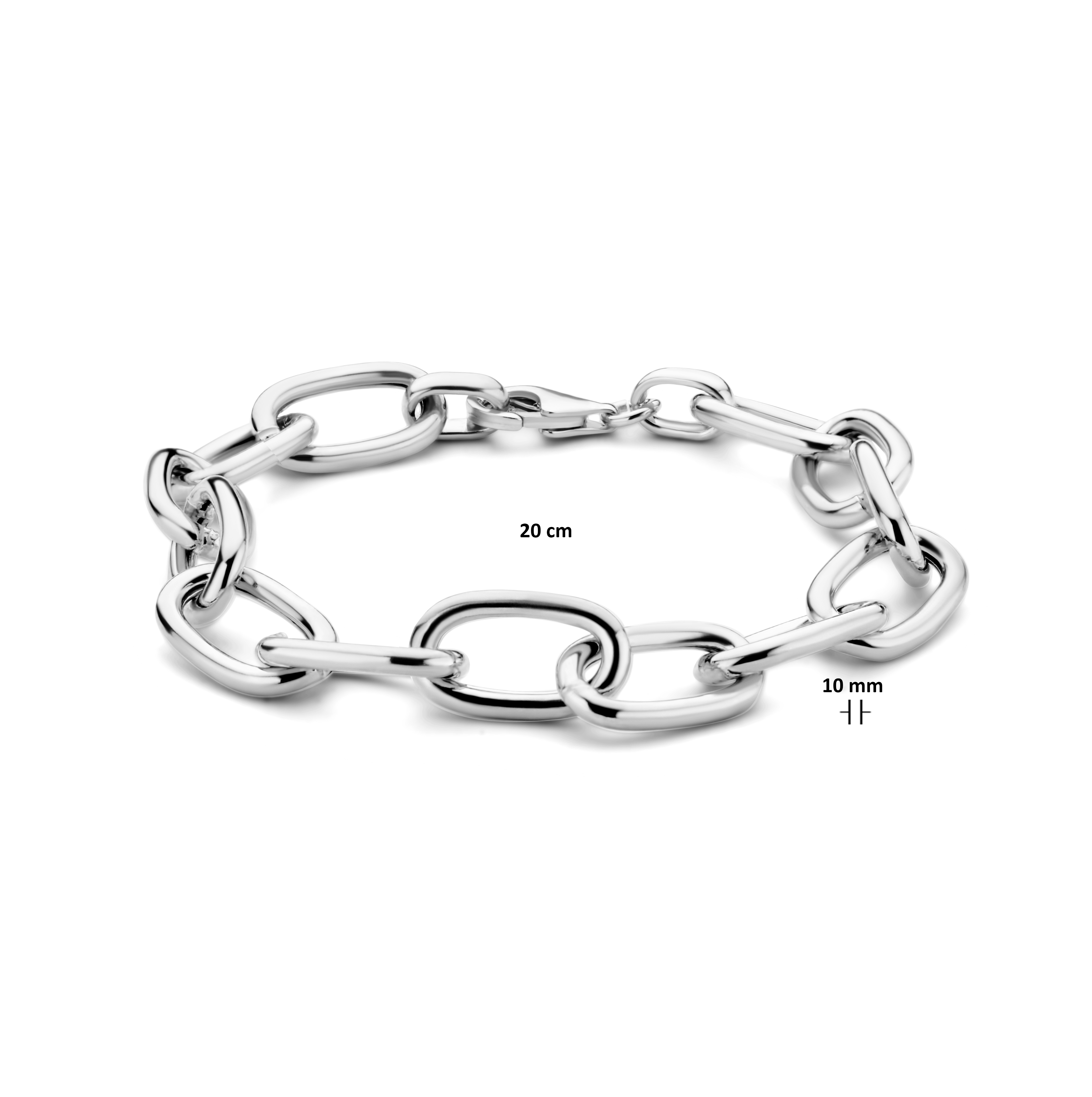 Gerhodineerd 925 zilveren paperclip armband uitgevoerd met een karabijn sluiting. De armband heeft een draaglengte van 20cm.