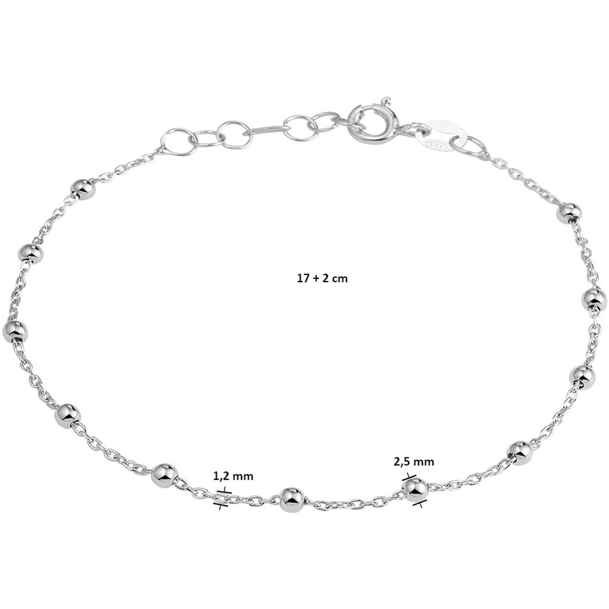 Gerhodineerd 925 zilveren armband uitgevoerd met bolletjes met een breedte van 2.5mm. De armband heeft een draaglengte van 17cm met een extensie van 2cm.