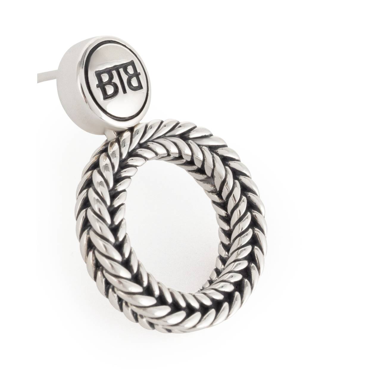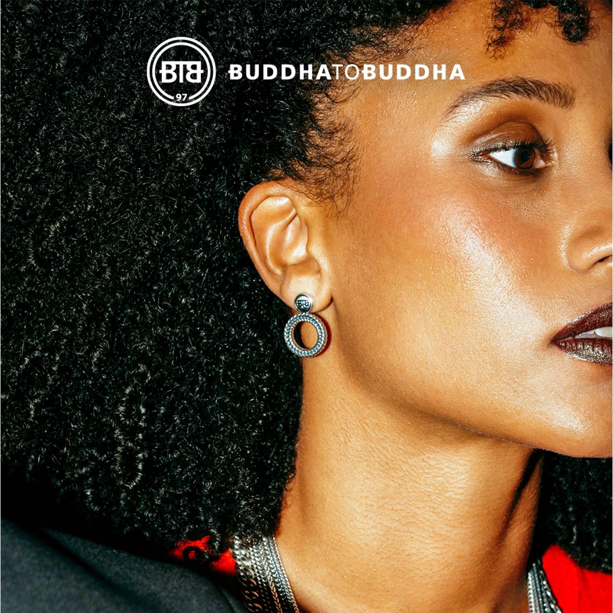 Buddha To Buddha 1x  massief zilveren ronde - bewerkte oorsteker met het logo   -  426-Barbara round