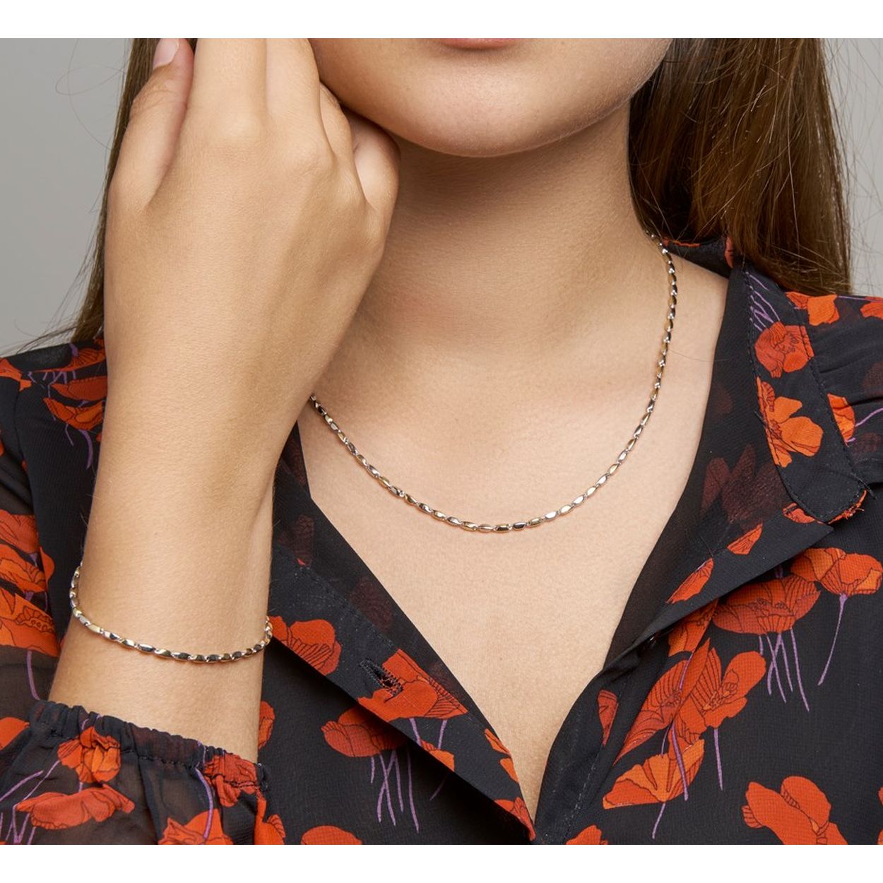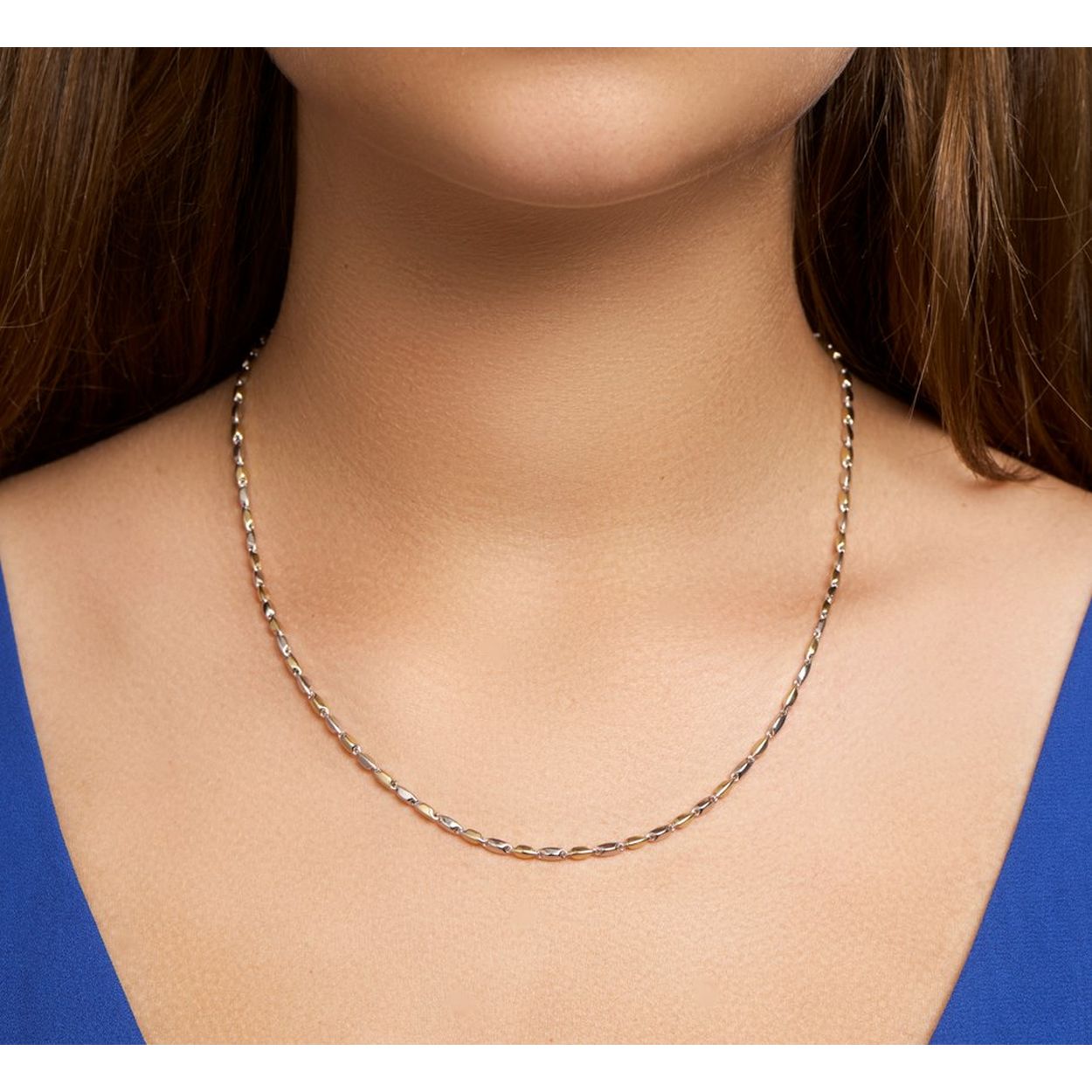 14k Bicolor geel- en witgouden collier uitgevoerd met een stevige karabijn sluiting. Het collier heeft een draaglengte van 45cm.