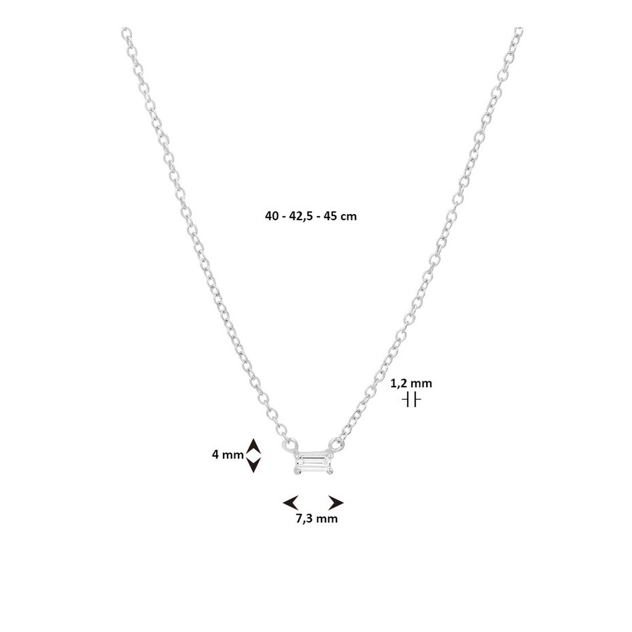 Gerhodineerd 925 zilveren collier uitgevoerd met een schitterende zirkonia en een stevige karabijn sluiting. Het collier heeft draaglengtes van 40, 42,5 en 45cm.