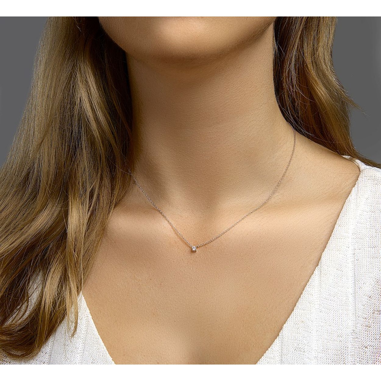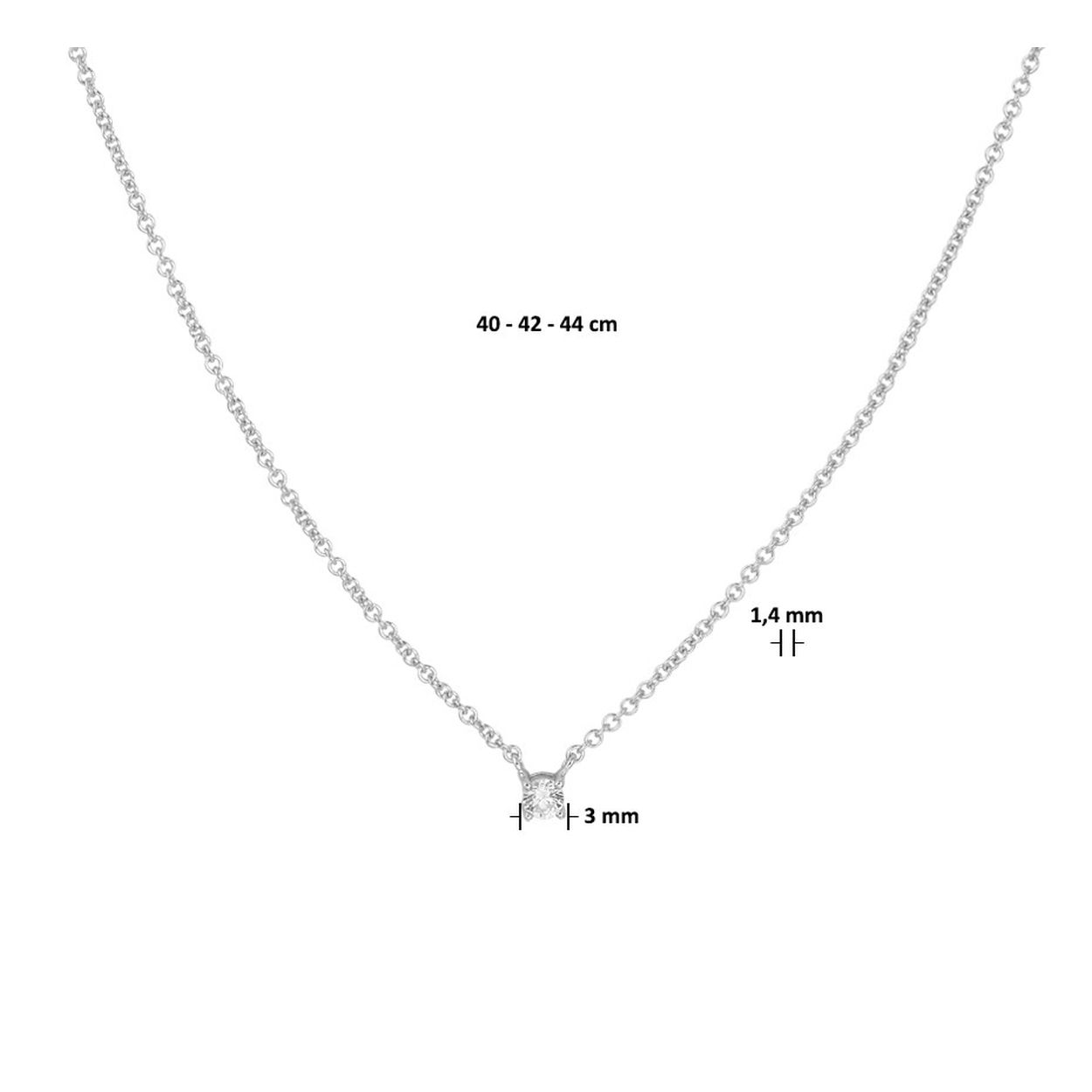 Gerhodineerd 925 zilveren collier uitgevoerd met een schitterende zirkonia en een stevige karabijn sluiting. Het collier heeft draaglengtes van 40, 42 en 44. De zirkonia heeft een diameter van 3mm.