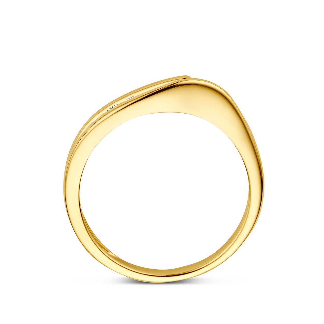14k Geelgouden ring uitgevoerd met diamanten. De ring heeft een breedte van 4.5mm.