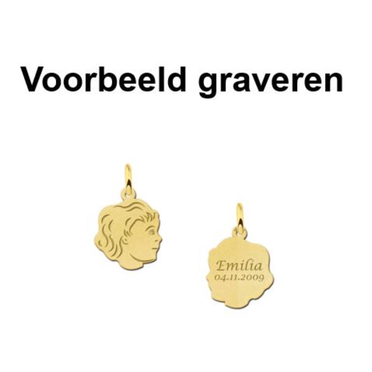 14k Geelgouden graveerhanger met een stevig hangoog. De totale hoogte van de graveerhanger is 1.5cm. Het rondje heeft een afmeting van 10mm en een dikte van 0.5mm.