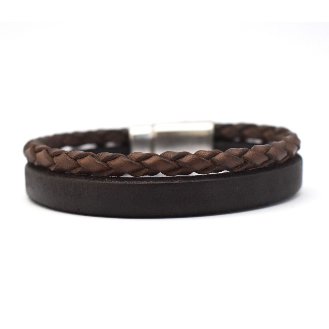 Dit is een prachtige Josh herenarmband gemaakt van metaal en leer. De kleuren van deze armband zijn zilver en bruin. De maat van dit sieraad is L-1 (215mm).