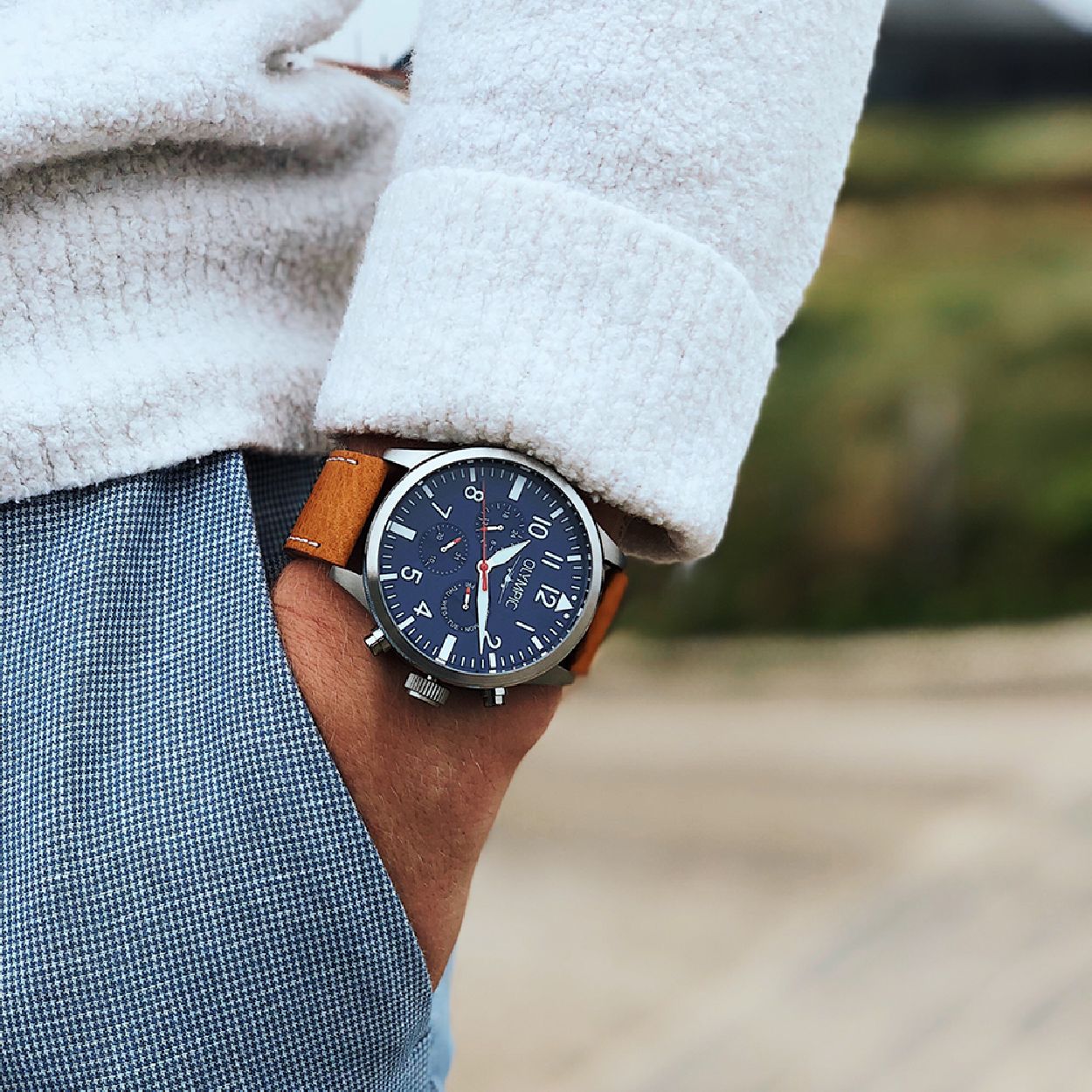 Olympic OL89HSL040 Skydive Horloge - Leer - Bruin - 46mm