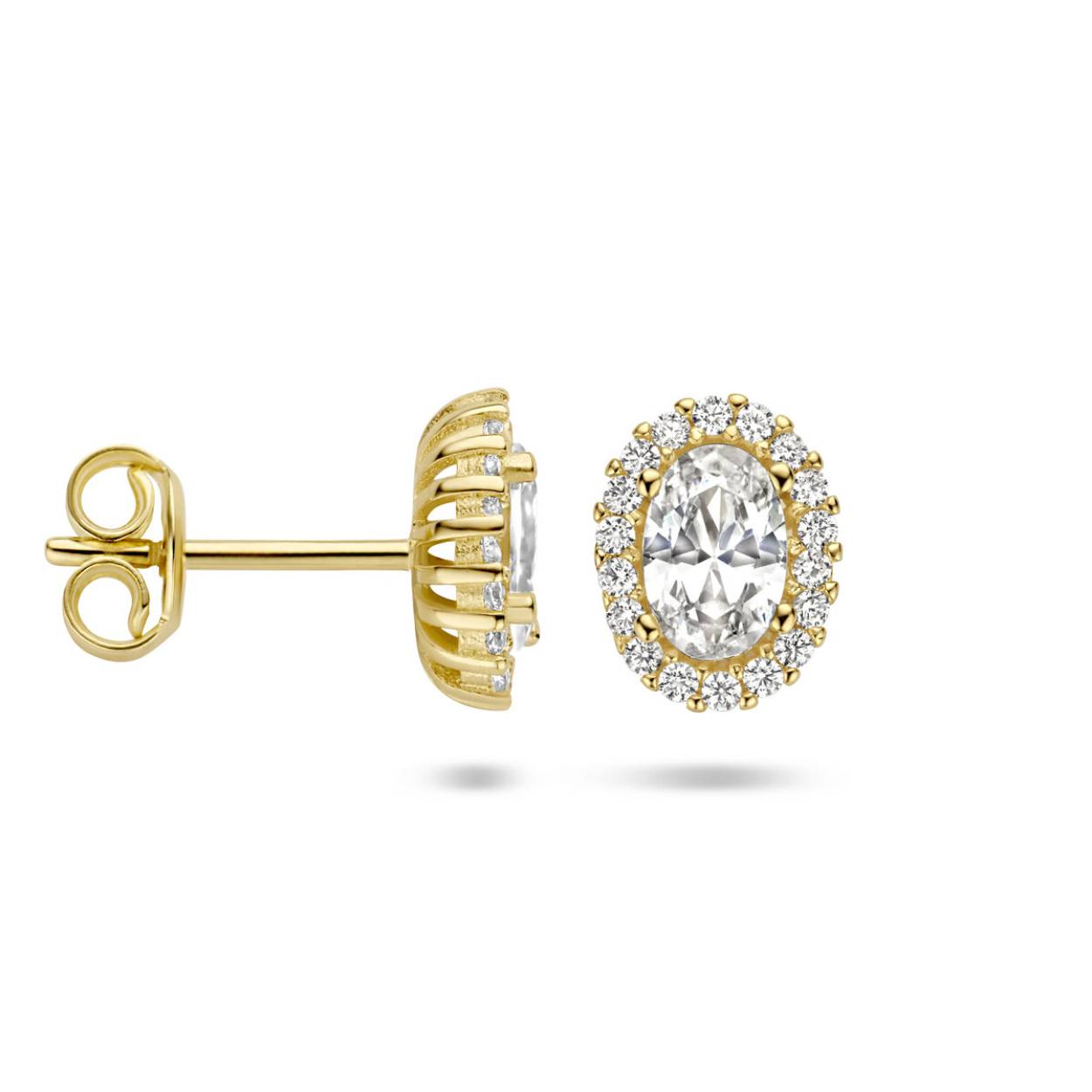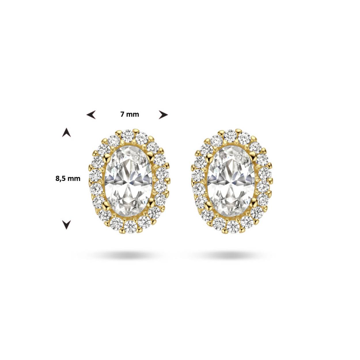 14k Geelgouden oorknoppen uitgevoerd met schitterende zirkonia. De oorknoppen hebben een afmeting van 8.5x7mm.