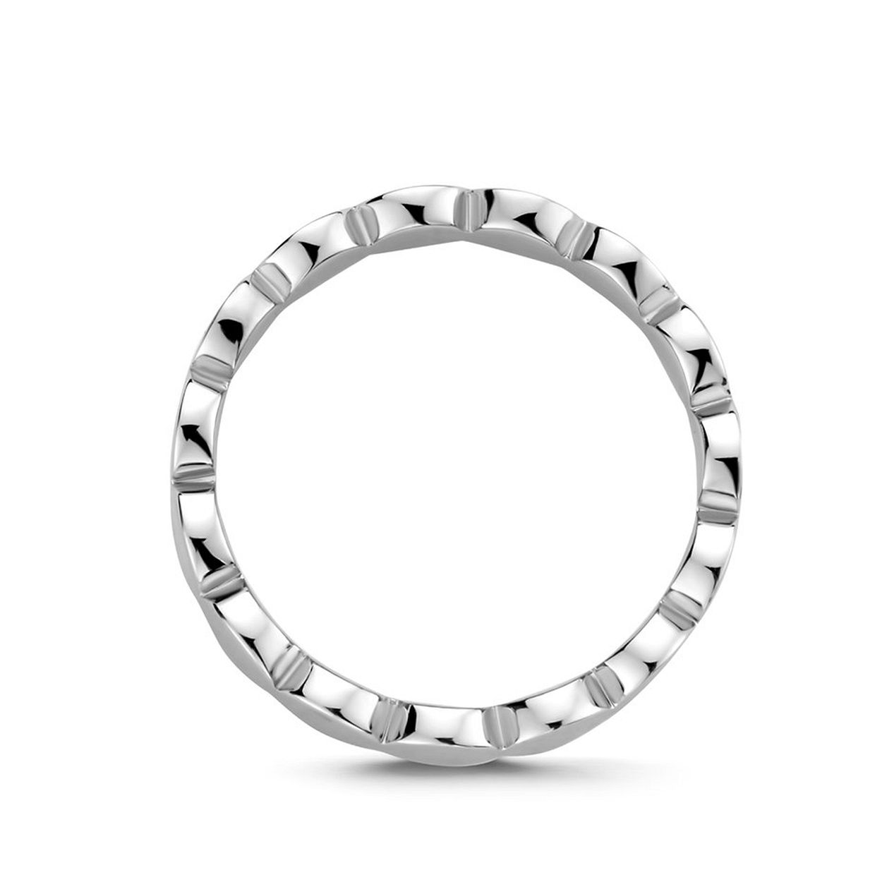 Gerhodineerd 925 zilveren ring uitgevoerd met rondjes. De ring heeft een breedte van 4mm.