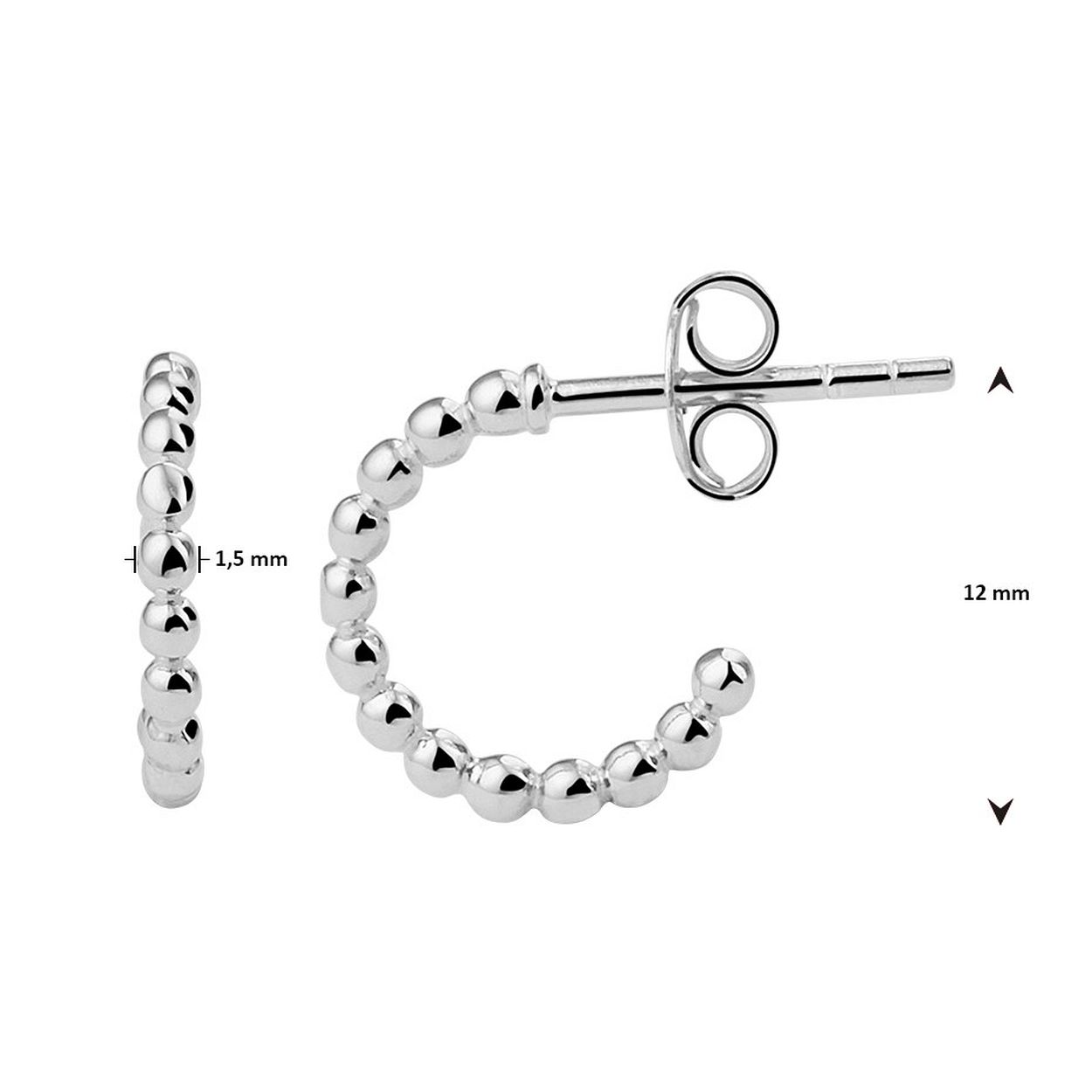 Gerhodineerd 925 zilveren stekeroorringen uitgevoerd met bolletjes. De oorstekers hebben een afmeting van 12x1.5mm.