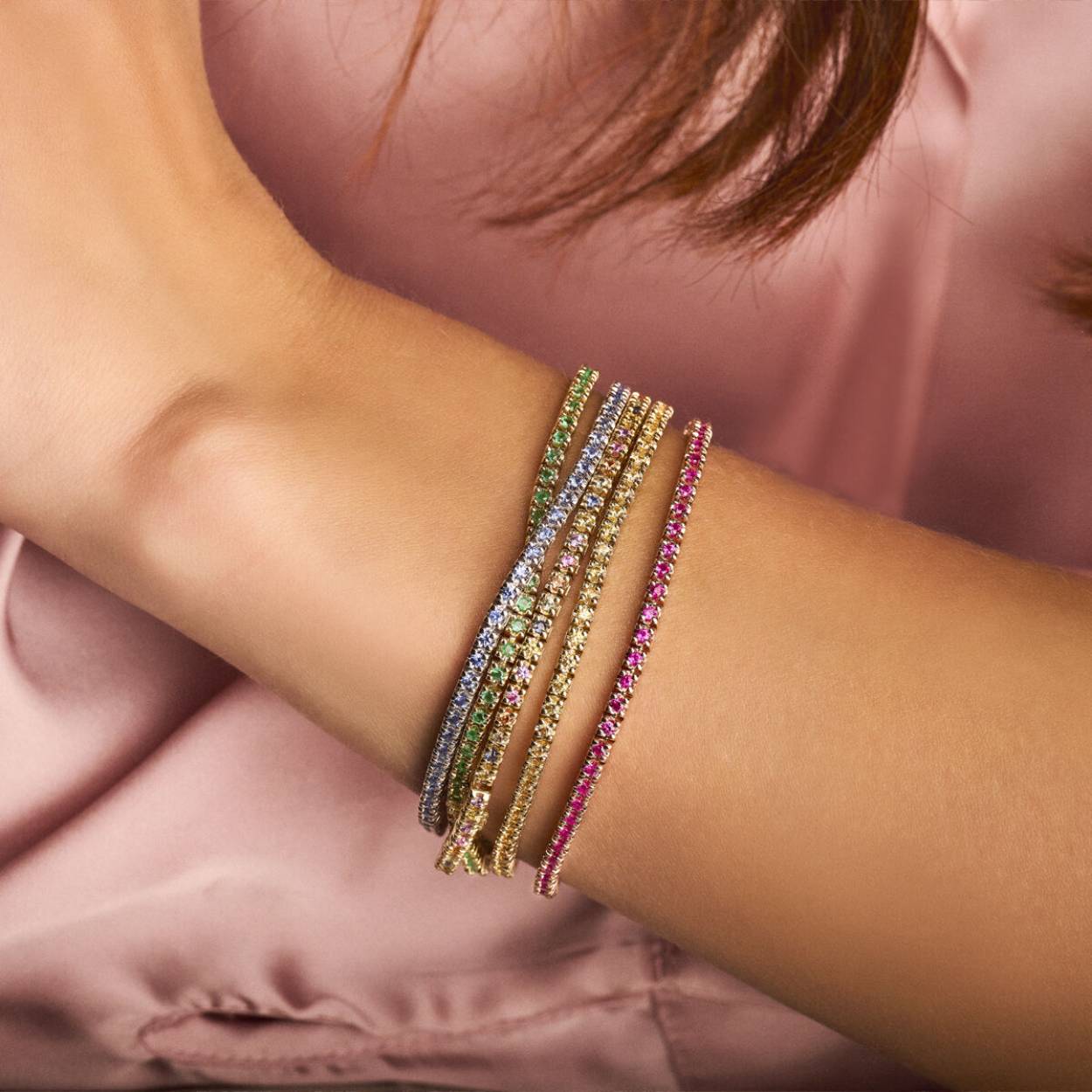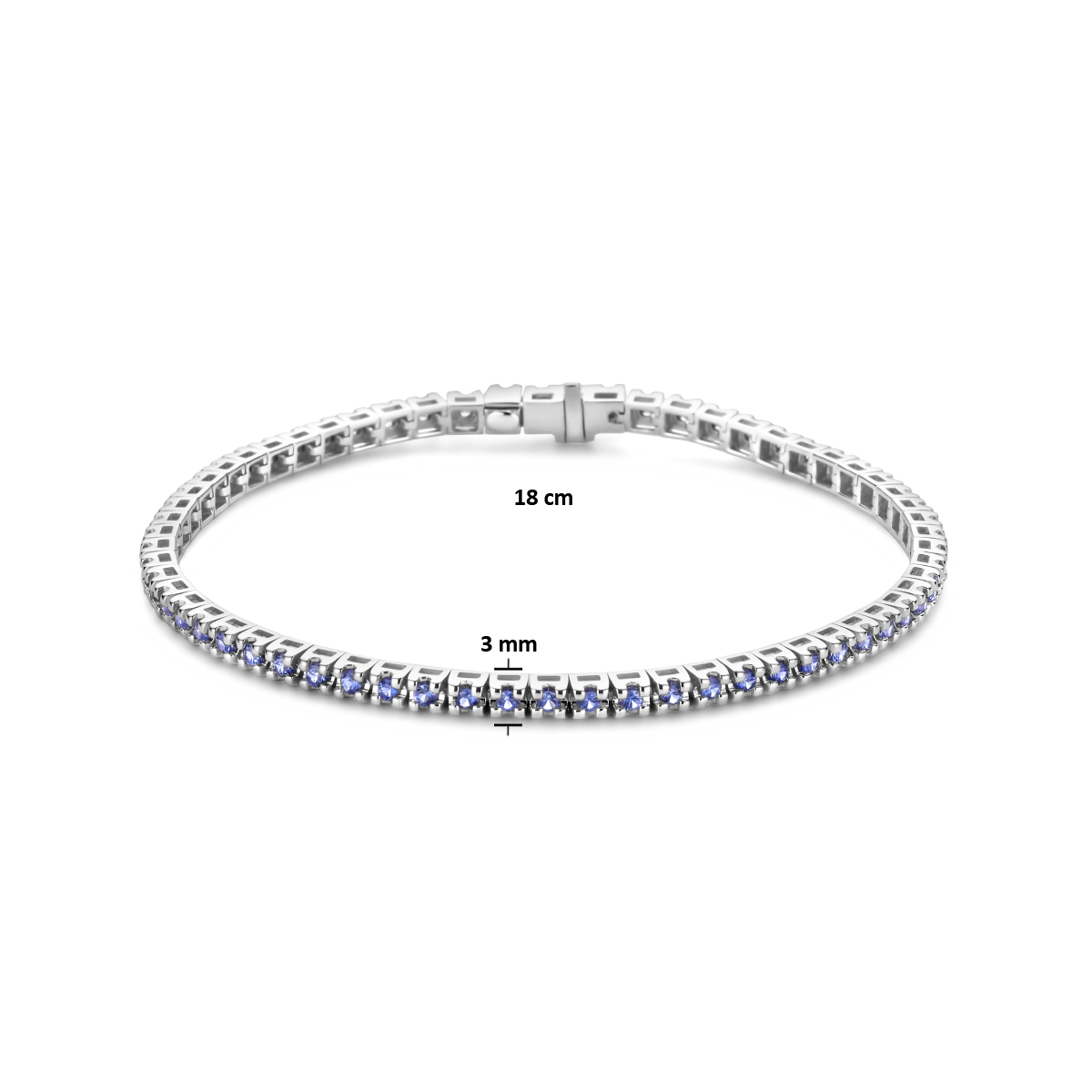 14k Witgouden tennisarmband met schitterende blauw saffier. De armband heeft een draaglengte van 18cm. De saffier stenen hebben een totaal steengewicht van 1.786ct.