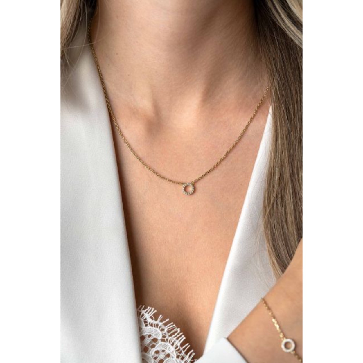 ZINZI gold plated zilveren ketting met open rondje (7,5mm) bezet met witte zirconia's 40-45cm ZIC2550Y